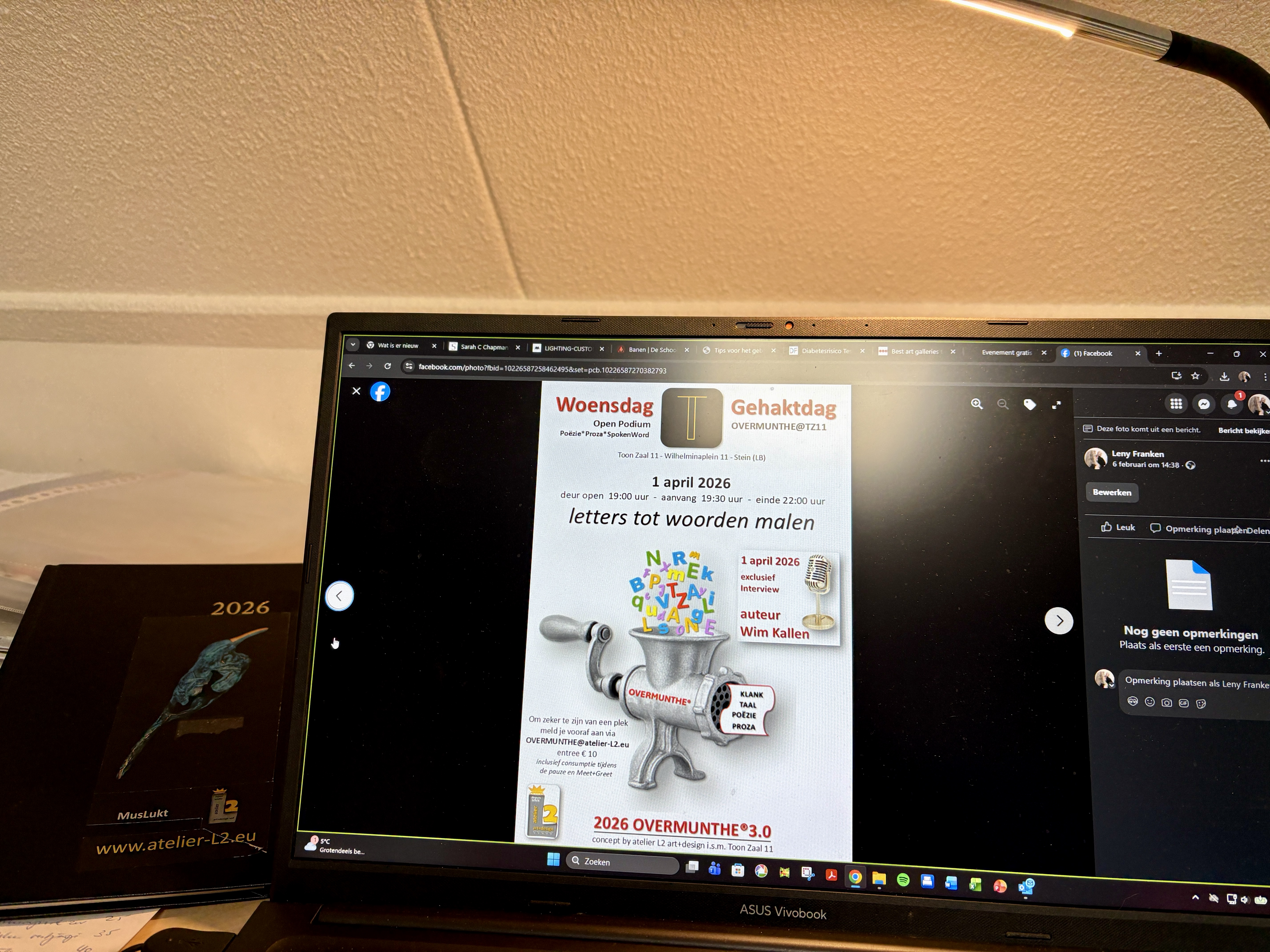 Alle Informationen findest du auf der Website. Mach mit, teile deine Leidenschaft und begegne anderen, um euch gegenseitig zu inspirieren. Die gastfreundliche Atmosphäre der Galerie Toon Zaal 11 bildet den stimmungsvollen Rahmen dieses Abends.