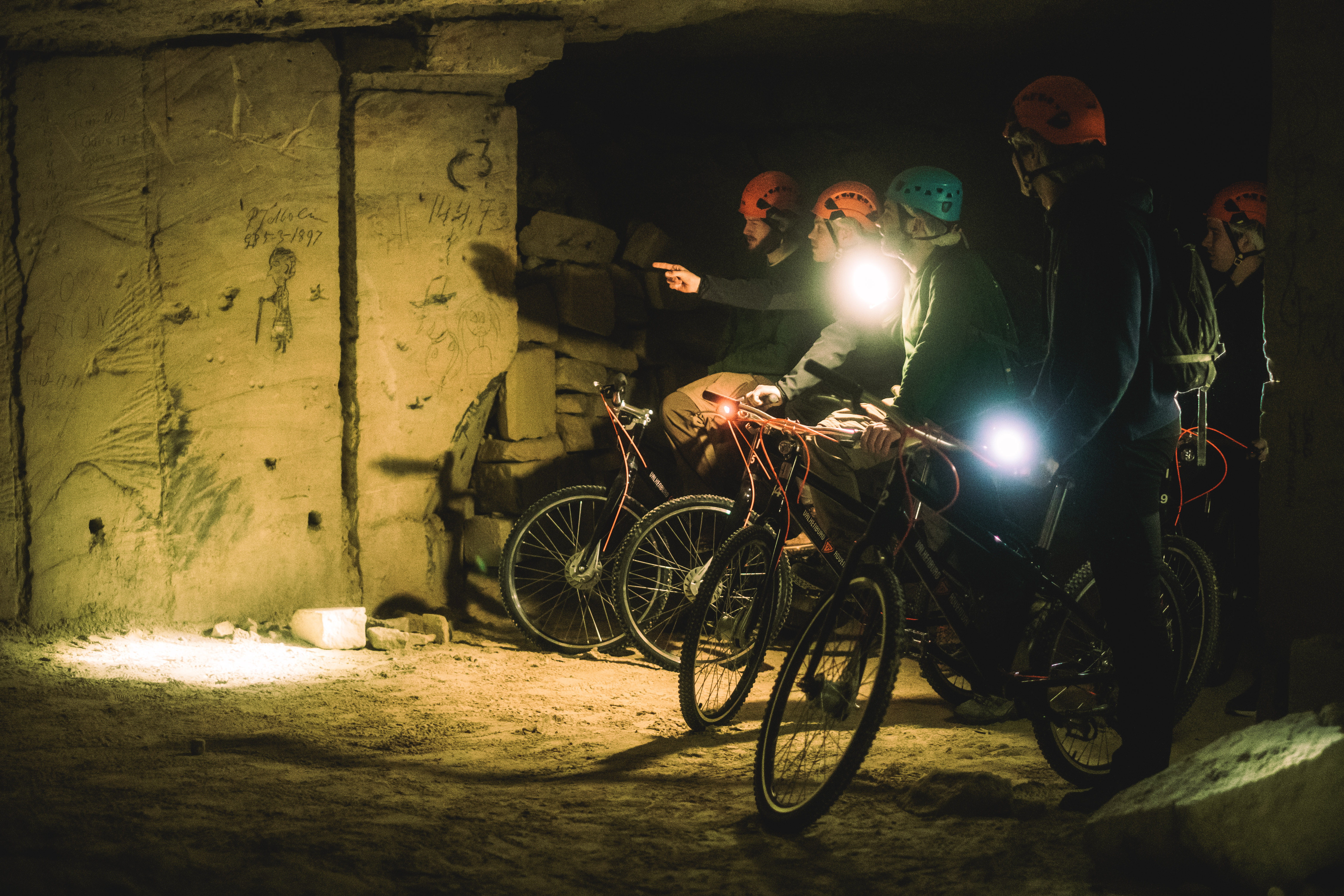 Zuerst steigst du auf dein Grottenbike und entdeckst diesen historischen, dunklen Ort: ein beeindruckendes unterirdisches Gangsystem mit einer Länge von nicht weniger als 70 Kilometern. Du fährst bis in die entlegensten Gänge und entdeckst jahrhundertealte Geschichten.